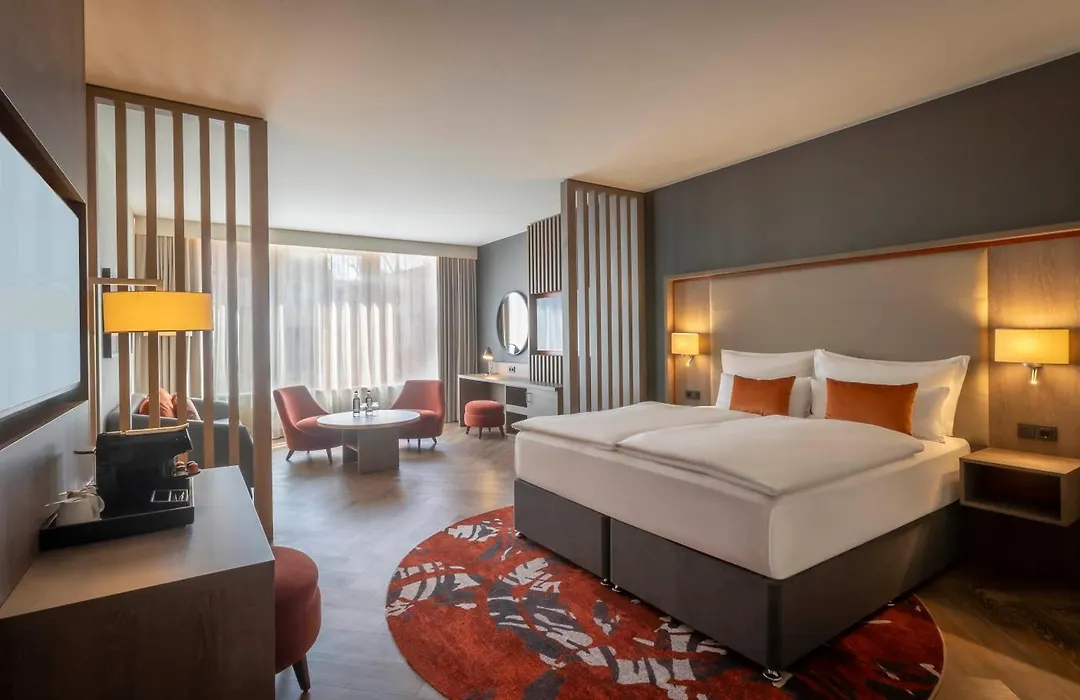 The Sheraton Düsseldorf Airport Hotel is a go-to choice for business travelers, conveniently located directly adjacent to the airport. This hotel offers modern amenities, spacious rooms, and dedicated meeting spaces that cater to corporate needs. Guests can take advantage of the airport shuttle service, making their arrival and departure hassle-free. The hotel also includes a business center, perfect for printing or preparing for meetings, alongside wellness facilities to unwind after a busy day. Dining options, including a stylish restaurant and bar, provide easy meals and a place to network. Experience efficiency and comfort at the Sheraton Düsseldorf Airport Hotel, where business meets convenience.
